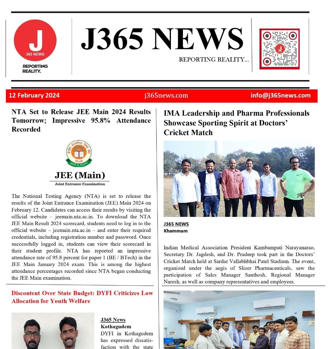 J365న్యూస్ కొత్తగూడెం : యువత సంక్షేమానికి పాటుపడతామని చెబుతూనే, యువజన సర్వీసులు, క్రీడలకు బడ్జెట్లో నిరాశ జనకంగా కేటాయింపులు ఉన్నాయని, భారత ప్రజాతంత్ర యువజన సమాఖ్య (డివైఎఫ్ఐ) భద్రాద్రి కొత్తగూడెం జిల్లా కమిటీ అభిప్రాయపడింది. యువత సంక్షేమానికి గత ప్రభుత్వం తీవ్ర…