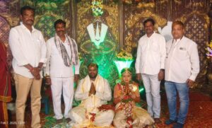 లక్ష్మీ దేవి పల్లి సంజయ్ నగర్ శ్రీ సాయిరాం ఫంక్షన్ హాల్ లో తెలంగాణ వాణి రిపోర్టర్ అఫ్జల్ బాయ్ బంధువులు ఆకుల కృష్ణ ఉమాదేవి దంపతుల కుమారుడు ఆకుల అఖిల్ ,మహాలక్ష్మి వివాహమహోత్సవానికి హాజరై నూతన దంపతులను ఆశీర్వదించి శుభాకాంక్షలు తెలియజేసిన బిఆర్ఎస్ పార్టీ లక్ష్మిదేవిపల్లి మండల అధ్యక్షులు కొట్టి వెంకటేశ్వరరావు,ఆత్మ కమిటీ డైరెక్టర్ శేషాద్రి వినోద్,అఫ్జల్ బాయ్ మరియు కుటుంబ సభ్యులు.