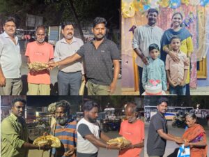 భద్రాద్రి కొత్తగూడెం జిల్లా స్థానిక కొత్తగూడెం బస్టాండ్ సెంటర్లో అభాగ్యులకు అనర్ధులకు యాచకులకు ఐక్య తల్లిదండ్రుల ఆధ్వర్యంలో అన్నదానం కార్యక్రమం నిర్వహించారు.ఈ కార్యక్రమం శ్రీలతబాలకిషన్ దంపతుల కుమారుడు అద్విత్ పుట్టినరోజు సందర్భంగా యాచకులకు అభాగ్యులకు అన్నదానం చేయడం జరిగింది.సంఘ నాయకులు మాట్లాడుతూ..ప్రతి ఒక్కరు సేవగుణం కలిగి ఉండాలనీ అన్నారు.ఈ కార్యక్రమంలో సంఘం రాష్ట్ర వ్యవస్థాపక అధ్యక్షులు మారుతిరత్న,జిల్లా ప్రధాన కార్యదర్శి బాలు నాయక్,షార్ట్ ఫిలిమ్స్ యాక్టర్స్ మరియు డైరెక్టర్లు నాని సంపత్,సహస్,శివ గాంధీ, యశ్వంత్ తదితరులు పాల్గొన్నారు