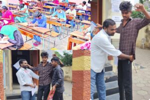 పలువురు జిల్లా కలెక్టర్లు మరియు అధికారులు ఇంటర్ పరీక్షలు పకడ్బందీగా నిర్వహించాలని సంబంధిత అధికారులను ఆదేశించారు.పరీక్షల సమయంలో ఎలాంటి మాల్ ప్రాక్టీస్కు తావు లేకుండా చూడాలని అధికారులు సూచించారు. ఈ నేపద్యంలో కొత్తగూడెం లక్ష్మీ దేవి పల్లిలో ఓ కాలేజ్ నందు విద్యార్థులను పూర్తిగా పరిశీలించి పరీక్షా హాల్లో పంపిస్తున్నారు.