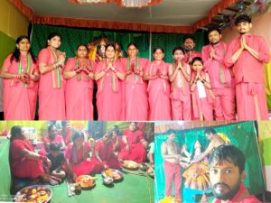 కొత్త తండాలో ఘనంగా దేవి శరన్నవరాత్రులు. ఈ సందర్భంగా గాయత్రి దేవి అలంకరణలో అమ్మవారి దివ్య దర్శనం సందర్భంగా టేకులపల్లి మండలంలోని కొత్త తండా గ్రామంలో భవానీలు, మాతలు స్థానిక ప్రజలు భక్తి శ్రద్ధలతో పూజలు నిర్వహించారు.అమ్మ వారి అనుగ్రహం ఆశీస్సులతో పడి పంటలు సమృద్ధిగా పండి ప్రజలు సుఖ శాంతులతో ఉండాలని కోరుకున్నారు.