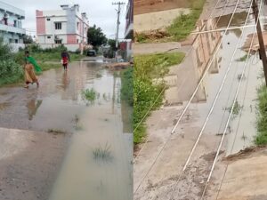 లక్ష్మీదేవిపల్లి మండలం సంజయ్ నగర్ గ్రామ పంచాయతీ పరిధిలోని హమాలీ కాలనీ,సరస్వతీ కాలనీ నందు చిన్న వానకే చెరువును తలపిస్తున్నా పట్టించు కోవడం లేదని స్థానిక ప్రజలు అవేదన వ్యక్తం చేస్తున్నారు.సైడ్ డ్రైనేజ్ కాలువలు లేకపోవడంతో వర్షపు నీరు రోడ్లన్నీ కప్పేస్తూ చెరువుల్లా మారుతోందనీ అంటున్నారు.విద్యార్థులు, పాదచారులు, కాలనీవాసులు తీవ్ర ఇబ్బందులు గురవుతున్నారు.ఇకనైనా అధికారులు స్పందించి డ్రైనేజీ కాలువల నిర్మాణం చేపట్టాలని ప్రభుత్వ అధికారులు, ప్రజాప్రతినిధులను కాలనీవాసులు కోరుతున్నారు.